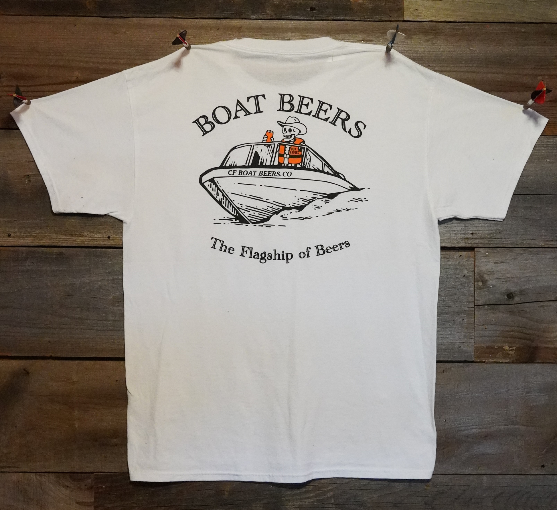 Featuring a bold back graphic of our iconic boat riding the waves, this design proudly declares “The Flagship of Beers,” making it more than just a shirt — it’s a lifestyle statement. The relaxed fit and durable print mean it’s built for long days on the water and even longer nights swapping stories.